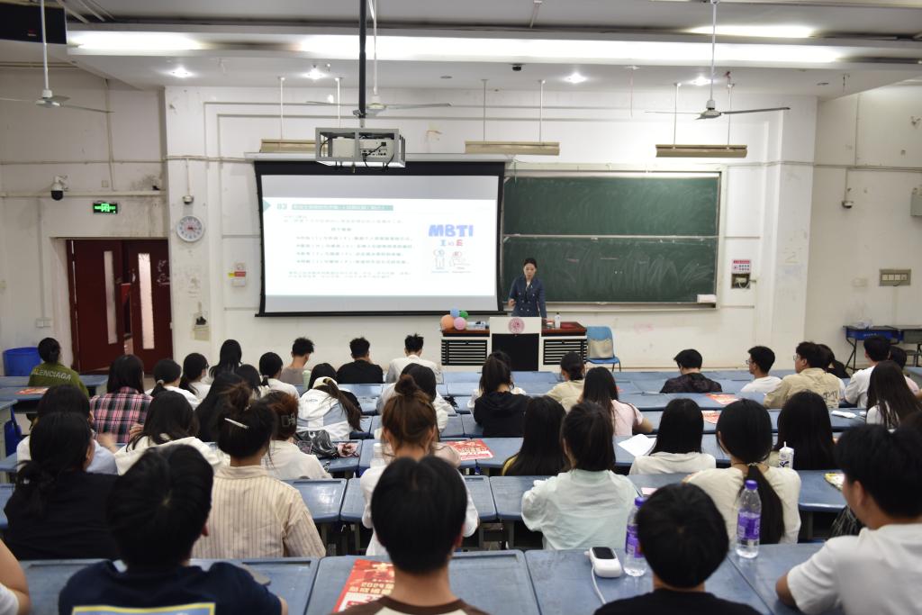 杜丽女士首先分享了自己的职业生涯经历,从初入职场的懵懂到如今的成就,她用自己的经历告诉学生们,职业规划是一个不断探索和实践的过程。接着,她引导学生们进行了职业性格测试,帮助大家更好地了解自己的性格特点和职业倾向。