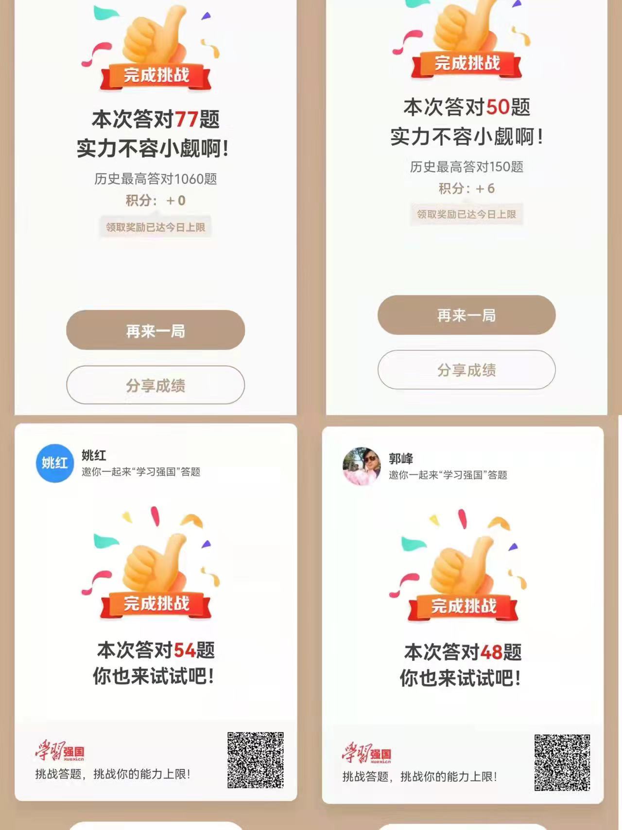 “学习强国”学习平台是由中共中央宣传部主管,以习近平新时代中国特色社会主义思想和党的十九大精神为主要内容,立足全体党员、面向全社会的优质平台。它既为党员学习党史提供了条件,又为广大人民群众提供了一个很好的学习平台。中国共产党是一个学习型政党,主动变革、创新学习,是掌握时代主动的关键。通过党总支持续开展的“学习强国挑战答题赛”活动,调动了广大党员教师参与“学习强国”学习的主动性、积极性,提升了大家的学习能力,达到了以赛促学的目的,检验了党员日常学习成效,掀起了广大党员教师的学习热潮。