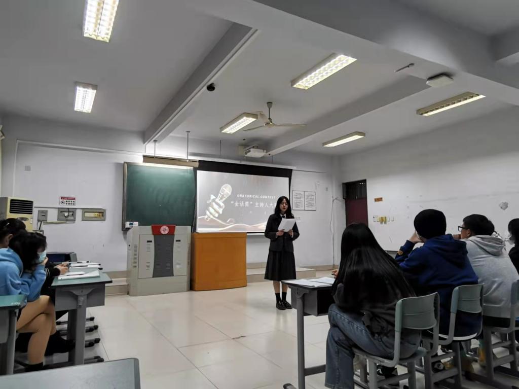 伴随着主持人慷慨激昂的开场词,主持人宣布本次比赛正式拉开帷幕。本次比赛共分为自我介绍、妙语连珠和模拟主持三个环节。参赛选手们自我介绍环节新颖独特,给评委及观众们留下了深刻印象。妙语连珠是随机在抽词箱里抽三张小卡片,小卡片上印有各种时政热点,社会热点,日常生活等词语,最为考验参赛选手的临场发挥能力及表达能力,各位参赛选手讲的绘声绘色,充分展现强大的控场能力。模拟主持环节各个选手都独具特色,展现出大学生应有的创新能力。各位评委听得津津有味,现场工作人员恪尽职守,台下观众十分热情。在各个工作人员及选手的共同努力之下,经过二个半小时的激烈对决,最后本次比赛在主持人的宣布下完美落下帷幕。
