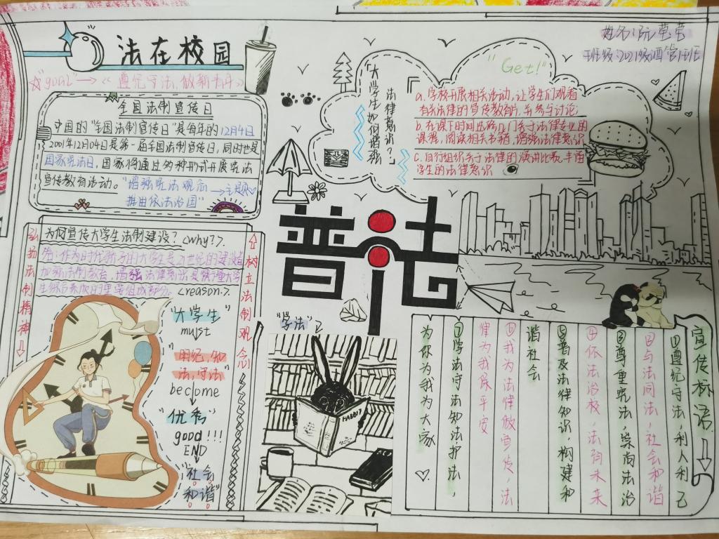 为让我院学生树立正确法治观念,培养法律意识,提升法律素养,掌握法律知识,能够认识到法律的严肃性和重要性,做遵纪守法的学生,即“知法守法学法用法”,11月14日,beat365官网组织开展“普法手抄报”比赛。