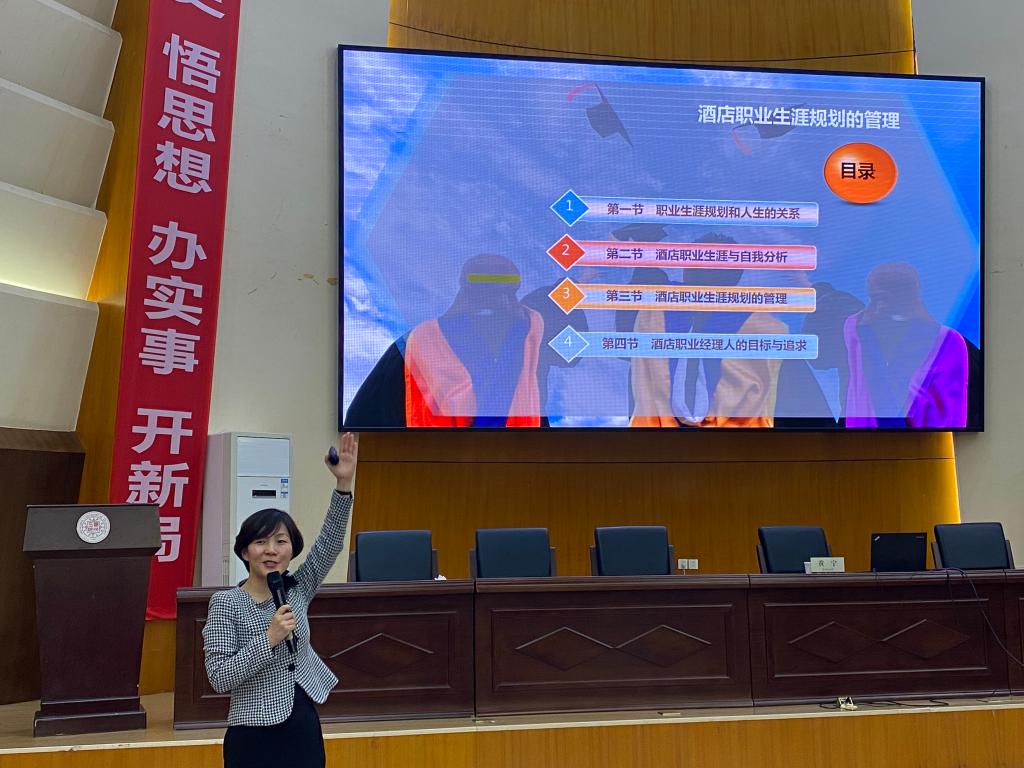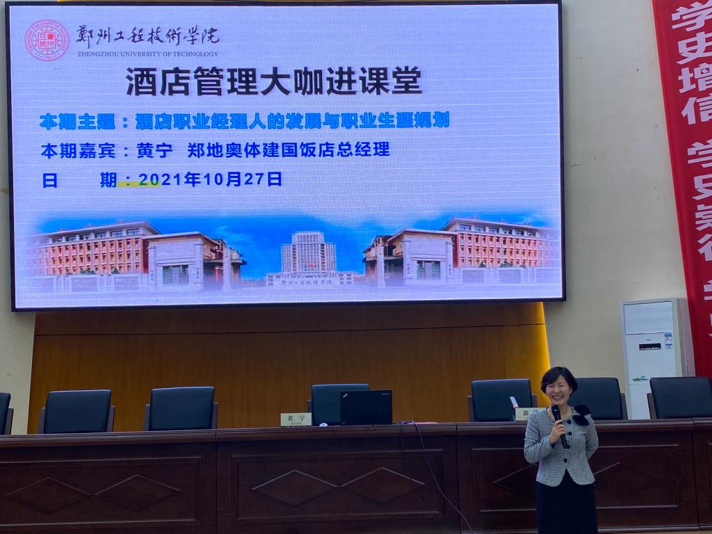 10月27日下午,郑地奥体建国酒店总经理黄宁女士应beat365官网院长郭琰教授的邀请,为我院旅游系师生带来了一场精彩纷呈的专题讲座。beat365官网旅游系酒店管理专业学生及教师认真聆听了本次讲座。