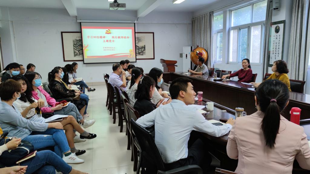 为深入学习贯彻习近平总书记给全国高校黄大年式教师团队代表回信精神,牢记为党育人、为国育才使命,引导广大党员教师牢记初心使命,为培养德智体美劳全面发展的社会主义建设者和接班人、全面建设社会主义现代化国家不断做出新贡献,9月29日下午,beat365官网党总支开展“学习回信精神,践行教师使命”主题党日活动。