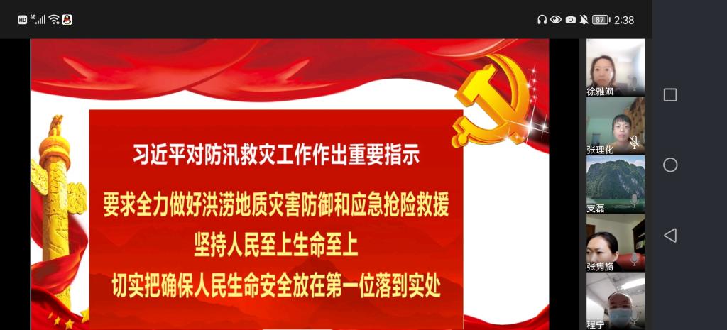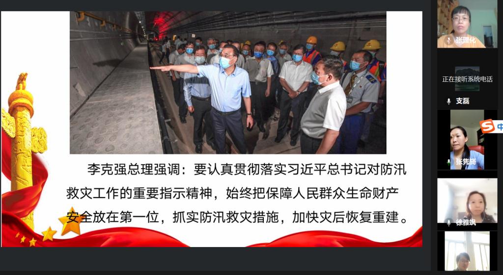 支部党员同志就会议学习内容和当前我省正面临的疫情防控和灾后重建双重考验的形势展开了积极地探讨交流。党员同志们认为,今夏洪水和疫情结伴而来,既检验了天灾困难中的地方治理体系与治理能力的现代化水平,也试炼出了基层党组织强大组织力和广大党员在危难来临时勇于担当、无私奉献、舍身忘我的精神品格。这次突如其来的特大洪水和疫情事件,党和国家领导人高度重视,以生命至上为原则,从中央到地方对抗洪救灾和疫情防控做出了广维度、多层次的工作部署,力促让受灾地区尽快恢复正常生产生活,党的力量尽显其中。这次考验进一步证明并巩固了中国特色社会主义的道路自信、理论自信、制度自信和文化自信。