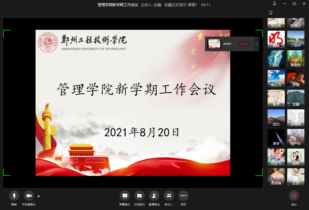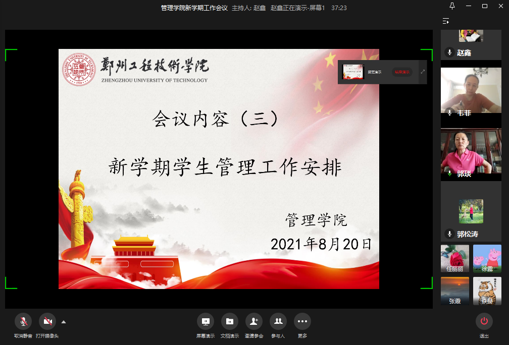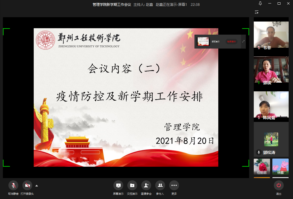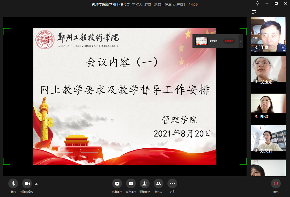 会议分为网上教学要求及教学督导工作安排、疫情防控及新学期工作安排、新学期学生管理工作安排三项内容有序进行。