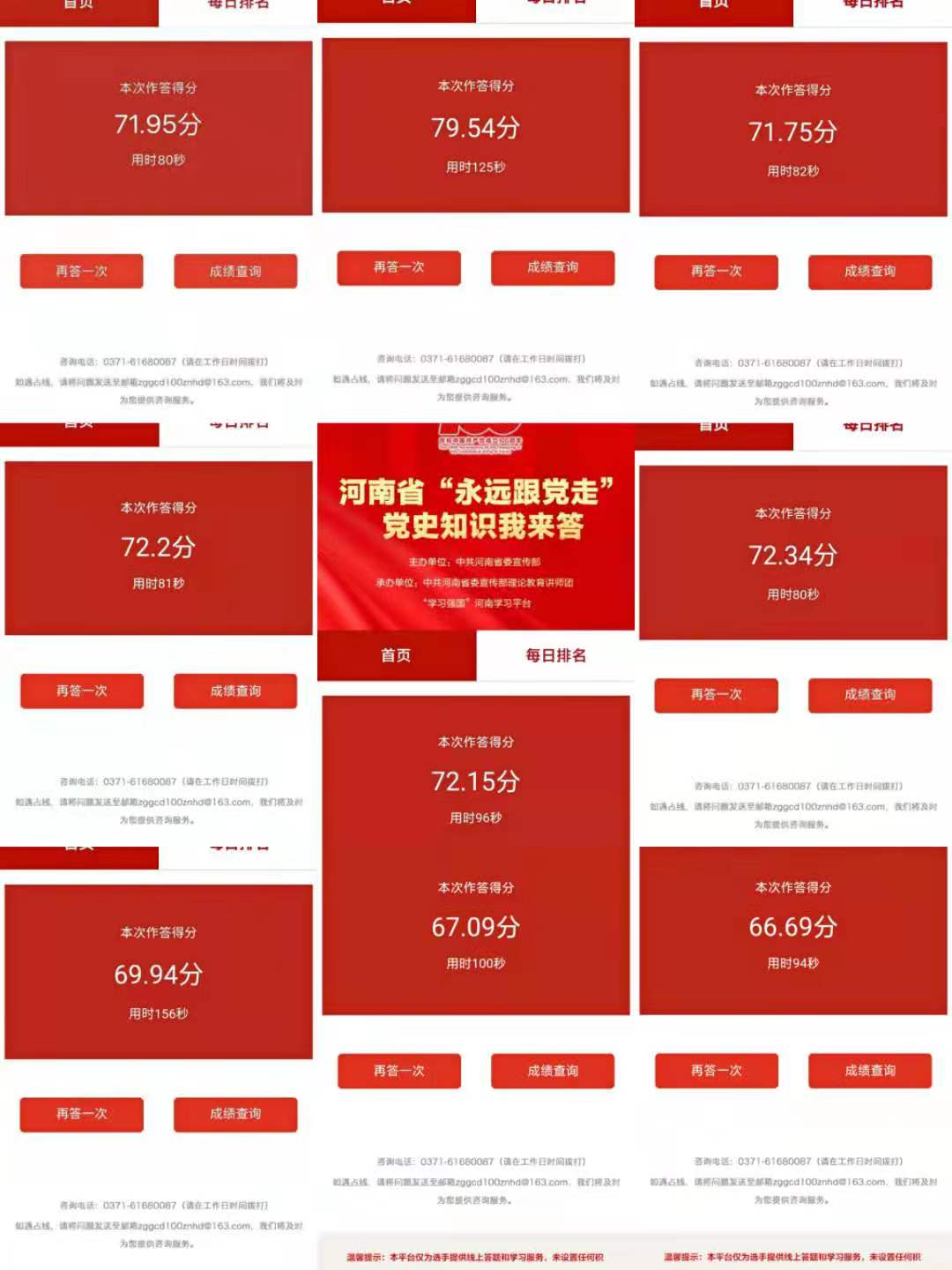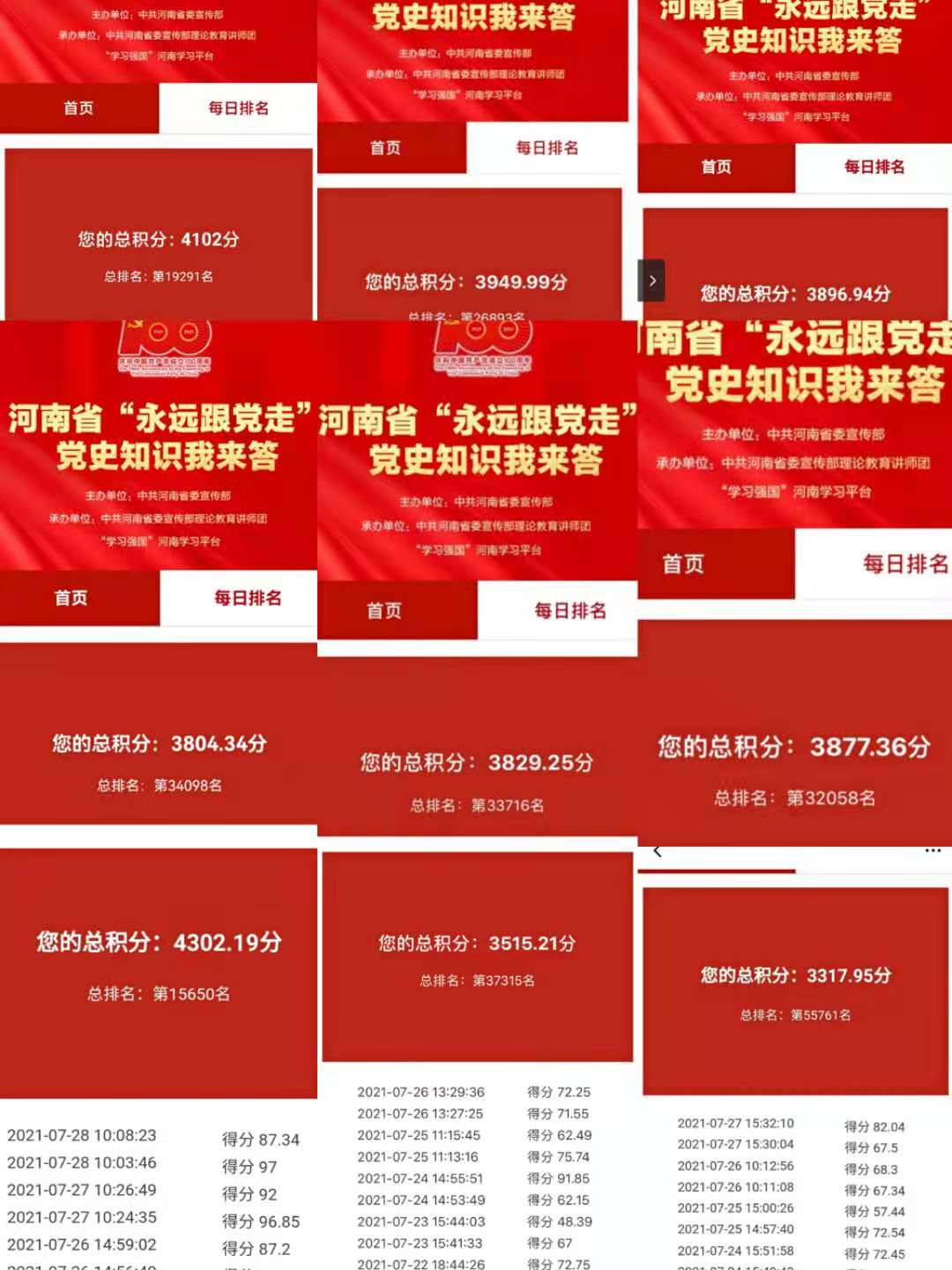 此次党史知识竞赛通过“学习强国”河南学习平台进行理论学习及测试,题目涵盖习近平新时代中国特色社会主义思想、党的十九大报告、中国共产党章程、中国共产党党史、时事政治知识、党规党纪等内容,每日20题,每题作答时间为20秒钟,分为单选、判断、多选,每日可看到个人累计分数及全省排名。活动期间,师生积极参与线上竞赛,通过党史知识竞赛活动,激发党员群众学习了解党史知识的积极性,进一步提升广大党员群众学习党史的积极性和实效性,做到学史明理、学史增信、学史崇德、学史力行,切实提高了大家的党员意识,加强了党性修养,增强了党员的神圣感与责任感,坚定了立场信念。