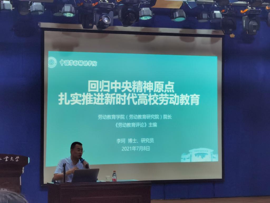 培训为期二天,共有三位专家做专题报告,北京大学卢晓东研究员做了题为《大学劳动教育课程框架与实施关键》的专题报告。报告中提出了了劳动的四个要素为手、脑、劳动工具和现象;解析了大学劳动教育课程框架中的显性课程与隐性课程;明确了现下劳动教育的关键是“间断”和“考虑”;最后从劳动教育的六个特点来推进劳动教育课程建设和实施。中国劳动关系学院李珂教授做了题为《回归中央精神原点,扎实推进新时代高校劳动教育》的主题报告,侧重谈了要凝聚共识,严格按照中央劳动教育的核心精神,结合目前高校劳动教育推进的实际情况,深入思考高校劳动教育体系的构建原则和推进举措。李珂教授最后总结各高校在劳动教育课程建设实施中要重点完善课程设置,规范督导评价,强化落实劳动教育人财物的支撑保障。中国劳动关系学院曲霞研究员做了题为《全面建构高校劳动教育课程体系的理论与实践》,进一步明确了劳动教育的重要地位,回答了劳动教育课程建构的新要求是塑造正确的劳动价值观,并针对如何培养劳动价值观提出六个操作要义。讲座结束后,会务办分组组织参会老师们进行了经验分享、观点交流。