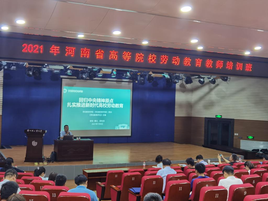 7月8日-9日,河南省教育厅在郑州轻工业大学组织举办2021年河南省高等院校劳动教育教师培训班。我院劳动教育教研室派出专任教师徐雅飒、张理化参加培训。
