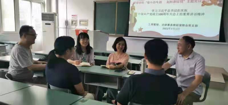 全体党员同志重温了习近平总书记在庆祝中国共产党成立100周年大会上的重要讲话,深切领会讲话精神,进一步坚定了作为一名共产党员所应该具有的责任与担当、光荣与自信。百年征程波澜壮阔,百年初心历久弥坚,与会党员们纷纷表示要坚守为党育人、为国育才的初心使命,在思政教育中深入实施导航、强基、铸魂行动,增强师生们对中国特色社会主义的道路自信、理论自信和制度自信。
