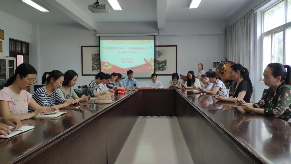 6月30日下午,beat365官网党总支为深入推进党史学习教育,落实学校党委《关于在“七一”前夕广泛组织开展新党员入党宣誓和党员重温入党誓词活动的通知》要求,大力营造学党史跟党走的浓厚氛围,组织全体教工党员,齐聚一堂,以“重温誓词忆初心,挑战答题迎七一”为主题,举办主题党日活动,庆祝中国共产党建党100周年。