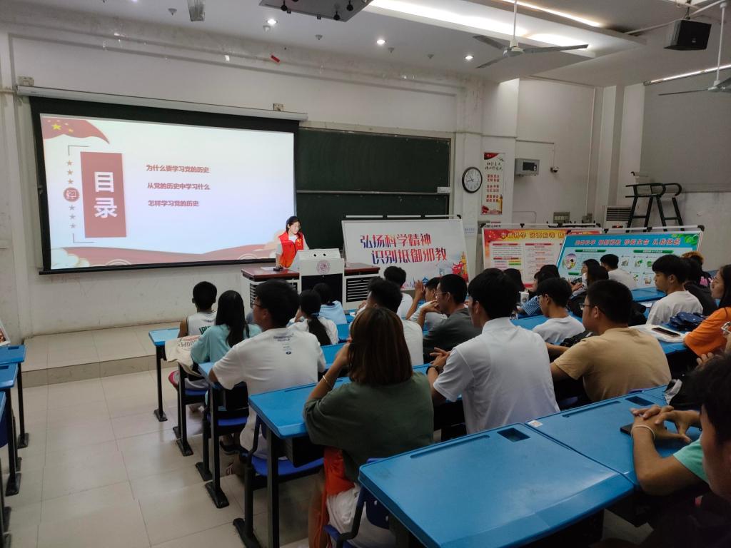 beat365亚洲体育在线官网“青春知行”暑期社会实践志愿服务团深入高校为在校大学生开展党史理论及反邪教知识宣讲活动,有效引导青年大学生坚定理想信念、砥砺政治品格,厚植爱党、爱国、爱社会主义的情怀,为全面建设社会主义现代化国家、实现中华民族伟大复兴中国梦贡献青春力量。