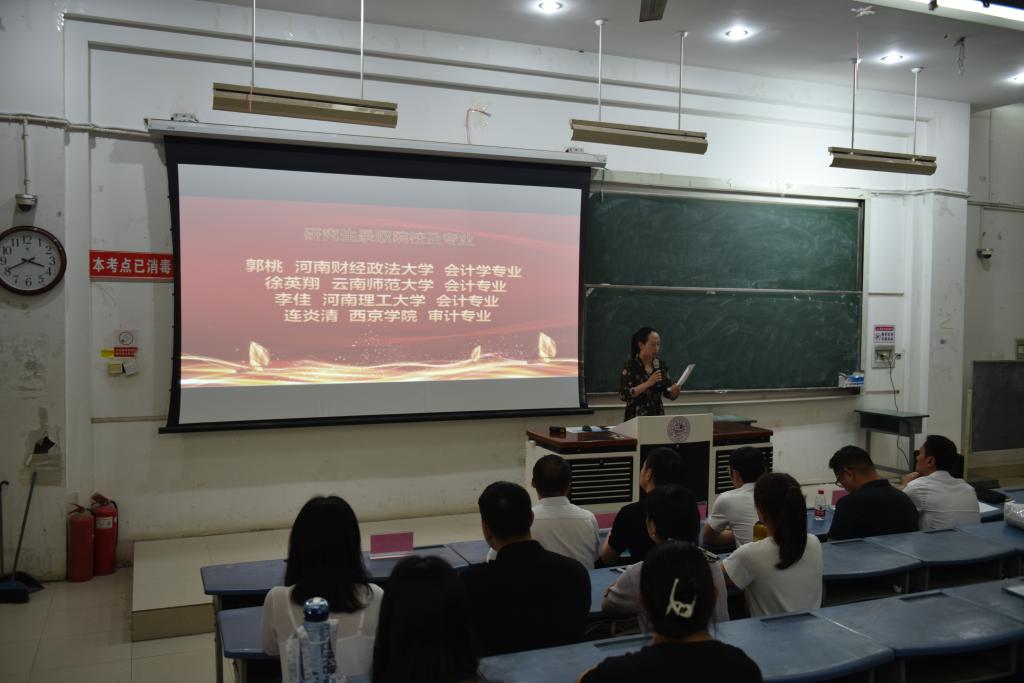 6月16日下午,beat365官网在博识楼3阶1教室隆重举行了2021届毕业生考研表彰大会暨2022届考研动员大会。出席人员有beat365官网党总支副书记韦菲,副院长王斌,会计系全体教师及辅导员老师们。本次活动还邀请了郑州大学商学院2008级MBA班的五名代表作为特邀颁奖嘉宾。郑州大学商学院2008级MBA班为我院考研学子设立了“郑大商学院08MBA班爱心奖学金”,用以资助和勉励我院的优秀学子。
