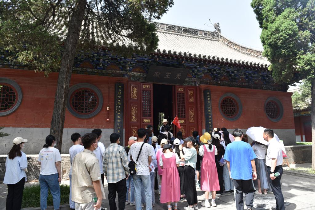 第二天上午参观洛阳博物馆,它是首批国家一级博物馆,从“最早的中国”夏代开始,绵延连续至唐宋,时代蝉联,文物精美。它囊括了五千年华夏文明,馆藏珍宝1.1万余件,馆藏量处于全国博物馆前列。学生在专业讲解员的带领下,参观了中国第一爵、华夏第一龙、中国最大石辟邪、曹魏白玉杯、绿松石镶嵌饕餮纹最早青铜器、春秋“王作”铜鼎、洛阳微笑泥塑人面像……等等各种国之重器。参观后,学生纷纷表示要好好学习历史知识和讲解知识,将来能够更好的把中国上下五千年的历史传播给更多的人。下午参观了中国第一所官办佛教寺院白马寺,有中国佛教的"祖庭"和"释源"之称,距今已有1900多年的历史。在这里了,学生亲身感受到中国佛教的发展以及对其他国家的影响。