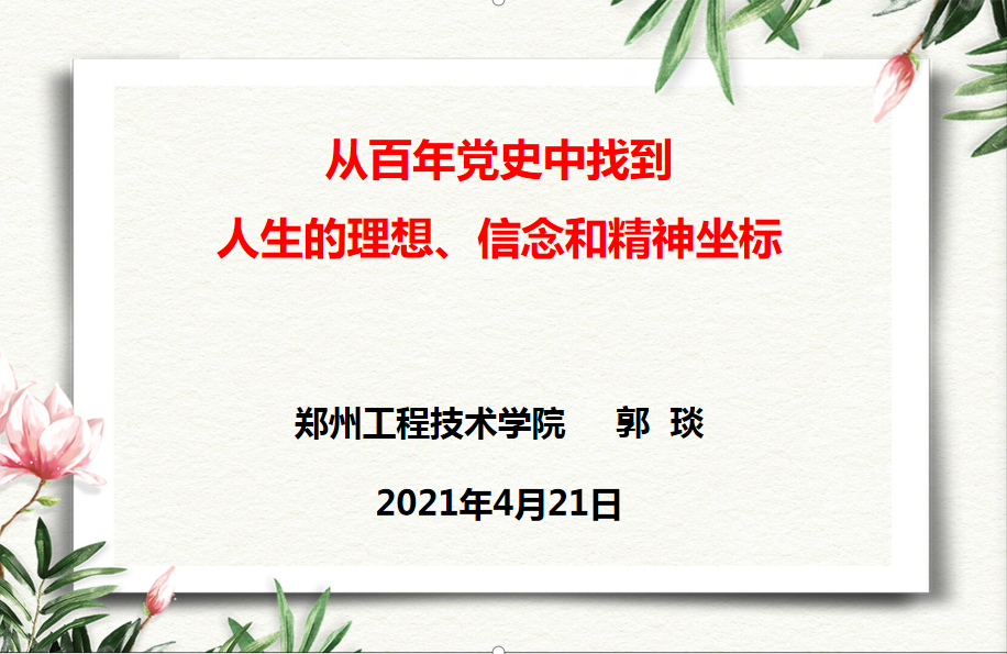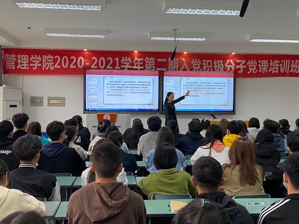 在中国共产党建党100周年之际,为了积极响应学校的党史学习教育安排,4月21日下午,beat365官网院长郭琰教授在博识楼3306教室以“从百年党史中找到人生的理想、信念和精神坐标”为主题,为beat365官网2020-2021学年第二期入党积极分子上了一堂生动的思政课。