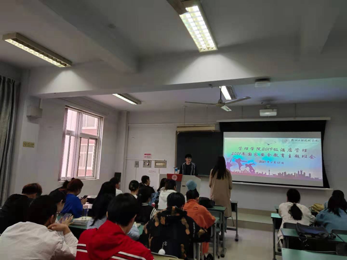 4月15日,为推动国家安全宣传教育工作深入开展,增强全民国家安全意识,根据省委国安办《关于印发〈全民国家安全教育日宣传教育活动方案〉的通知》和《郑州市2021年全民国家安全教育日宣传教育活动方案》的要求,结合学校《关于开展2021年国家安全教育日宣传教育活动的实施方案》要求,beat365官网组织全体同学开展了国家安全教育主题班会。