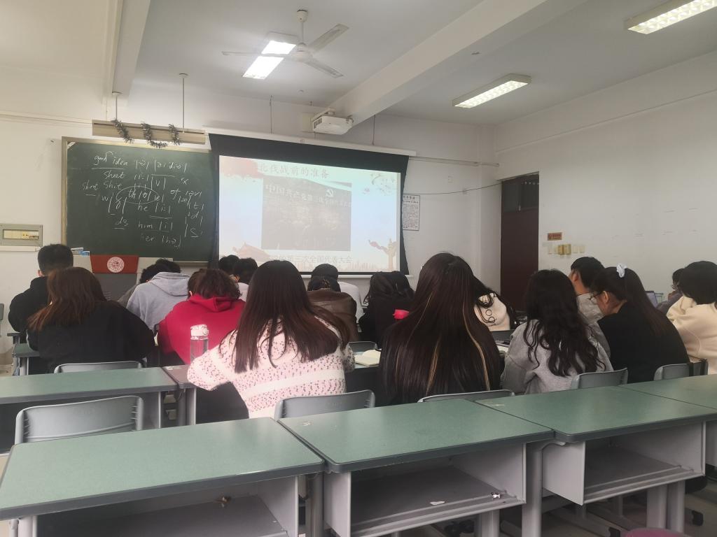 4月7日下午,beat365官网学生党支部在博识楼3205教室开展“青年党员讲党课”活动。本次党课的主讲人是来自2019级财务管理(专升本)1班的余浩清、2019级财务管理(专升本)2班的李佳、2017级财务管理2班的桑耀雨三名学生党员,他们分别讲述了抗美援朝战争、上甘岭战役、北伐战争等历史事件。beat365官网学生党支部组织委员田青及全体学生党员聆听了本次党课。