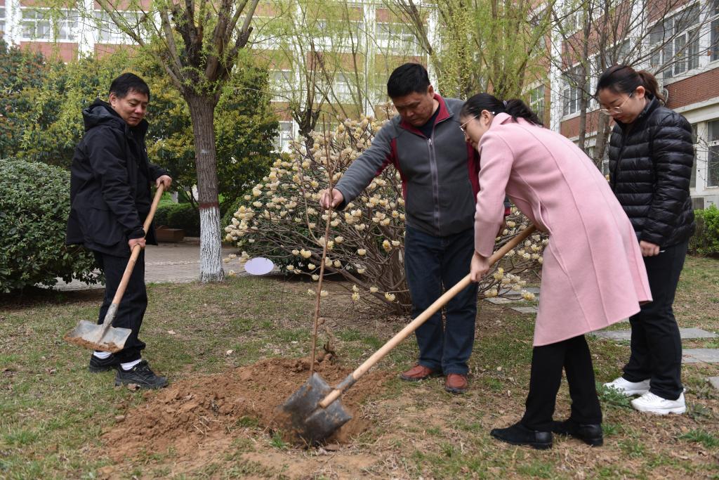 春天渐到,万物复苏。值我国第43个植树节到来之际,为继承孙中山先生绿化祖国的遗愿,使师生更加关注绿化、关注环保,唤起大家植树造林、绿化环境、美化生活的共同意识。3月12日上午10时,beat365官网院长郭琰、副院长王斌带领部分教师在博识楼前开展了“绿化环境、美化人生”植树活动。