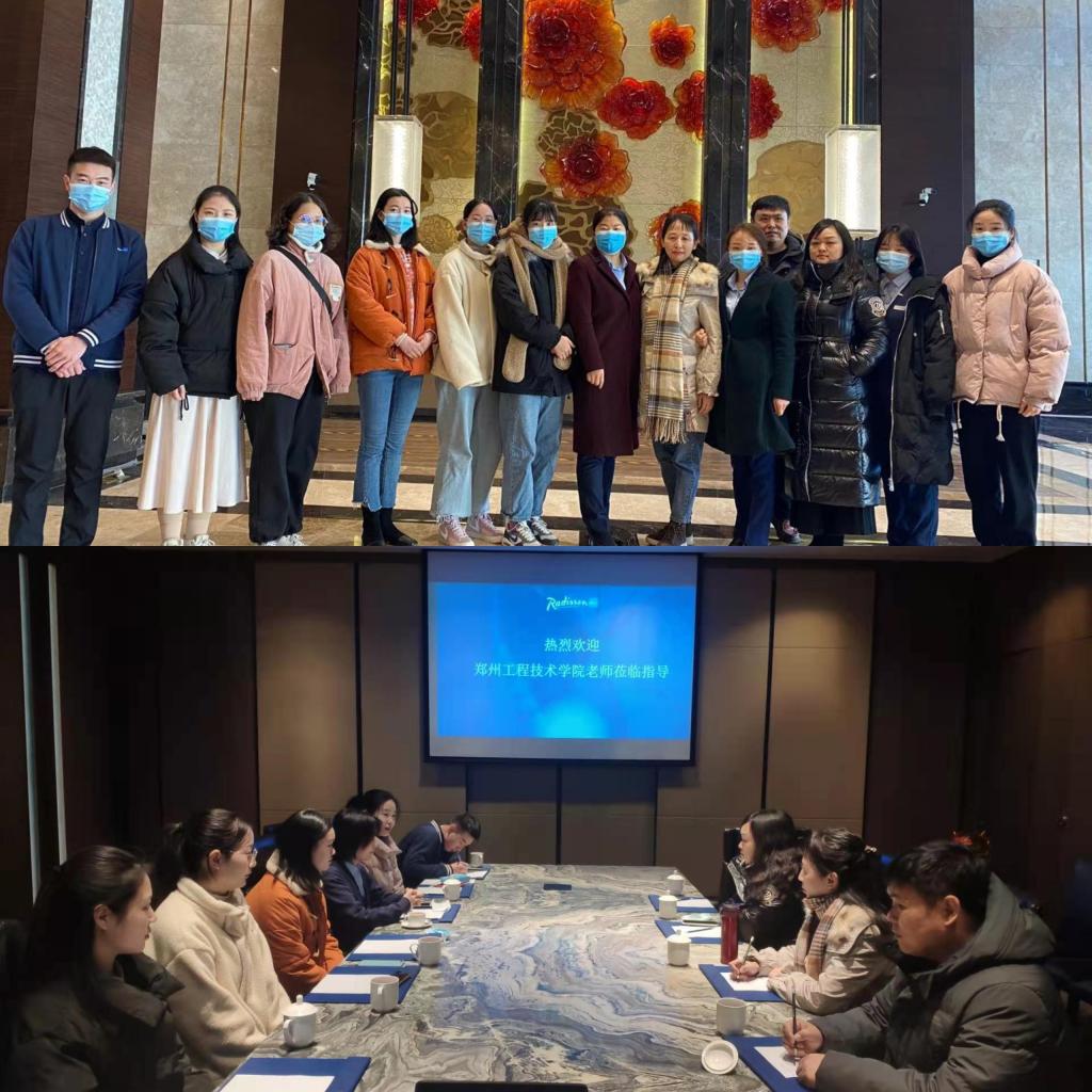 党总支副书记韦菲老师、旅游系郭松涛老师及丁明华老师走访郑州天地丽笙酒店并看望实习学生