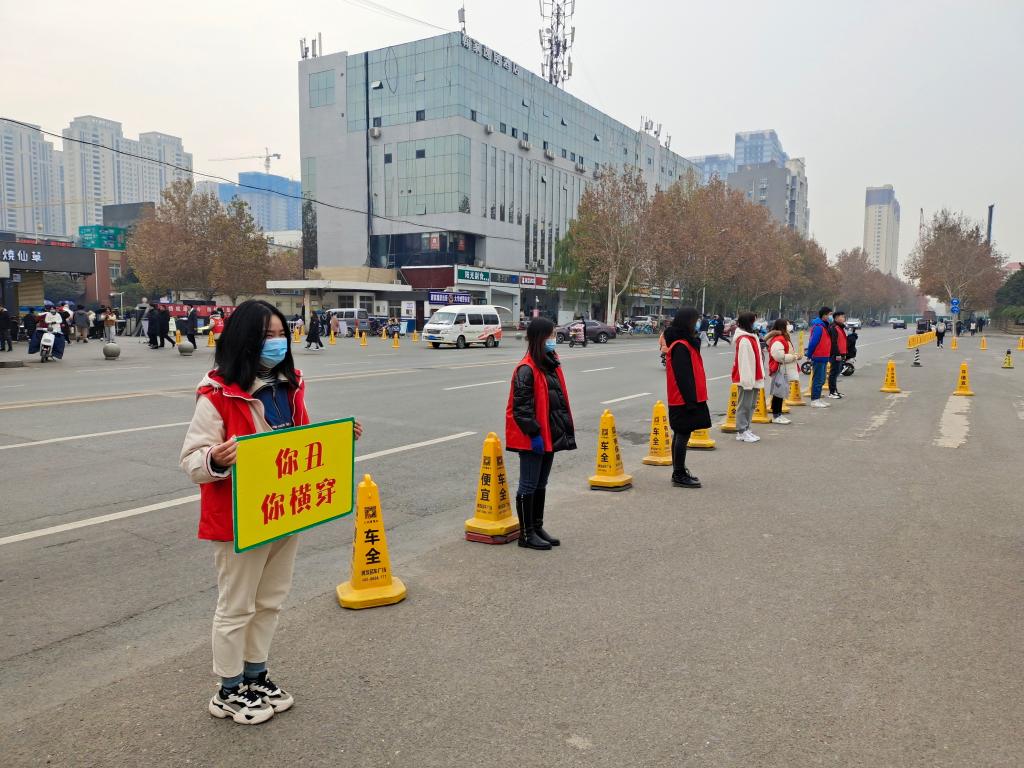 为了维护道路交通安全秩序,增强交通安全意识,引导同学们走过街天桥,预防和避免交通事故,确保学生的生命健康安全,beat365官网分团委、学生党支部于2020年12月16日-17日在英才校区南门口和国基生活园区门口组织分团委学生会工作人员及学生党支部党员开展了文明交通活动。