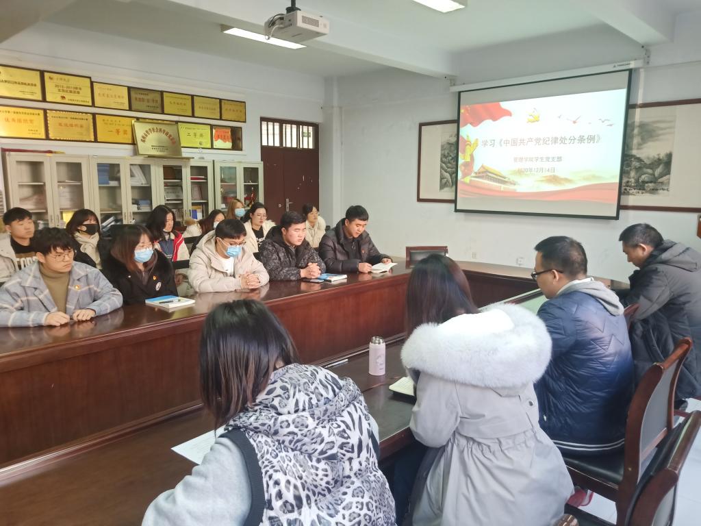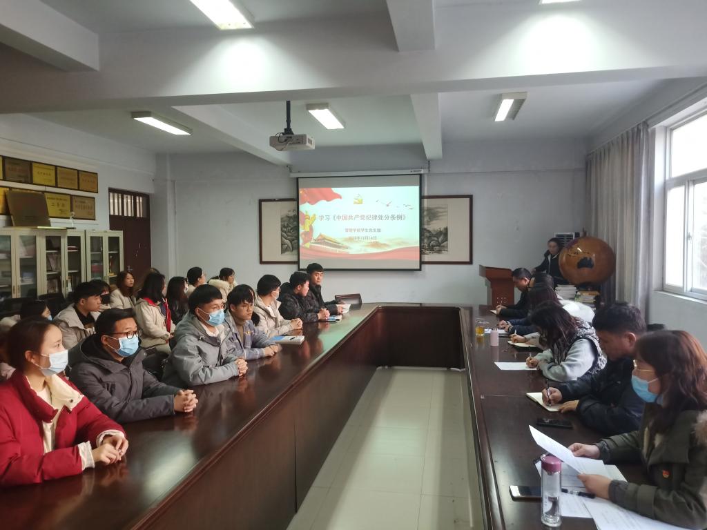 为加强支部建设和学生党员的规范化管理,进一步发挥党员的战斗堡垒作用。12月14日中午,beat365官网学生党支部全体党员在3108会议室集中学习了《中国共产党纪律处分条例》。