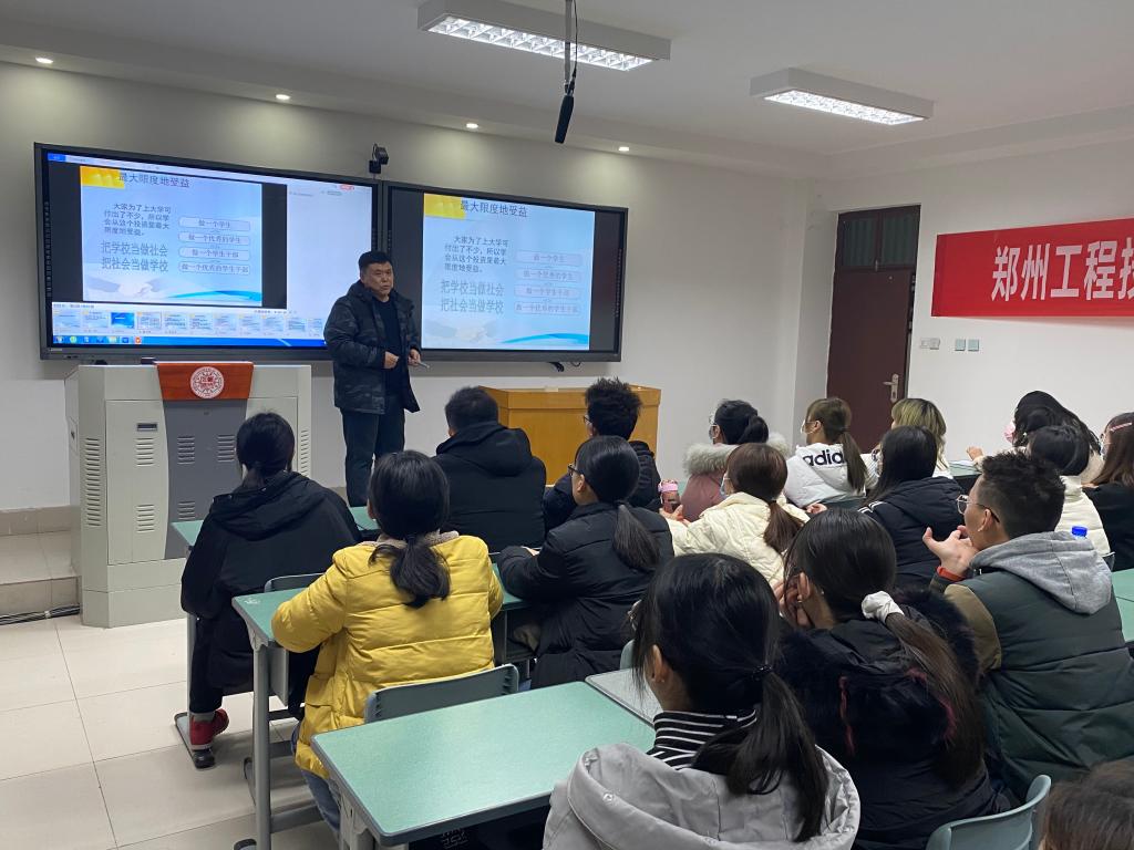 郭松涛老师以“学生干部的职能”为话题引入,从人生价值到学业学习,从三个方面向同学们讲述了学生干部的职责与品质。一是“学生干部应为同学服务”,要切实做到服务师生,无私奉献。二是“学生干部应尽其能”,做一名优秀的学生干部,要身体力行,履行工作职能,树立模范作用。三是“学生干部应学、做结合”,懂得平衡学习与工作关系,作为一名学生,学习是首要的事情,同时应该结合工作,学以致用,做到知行合一。