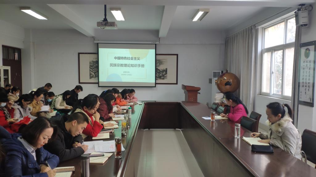 接下来学院陈凤菊老师带领大家学习《中国特色社会主义民族宗教理论知识手册》,要认真学习中国特色社会主义宗教理论,坚持以马克思主义为指导,明确党和国家在社会主义条件下处理宗教问题的方针政策。强调共产党员不得有任何宗教信仰,必须坚定马克思主义理想信念。