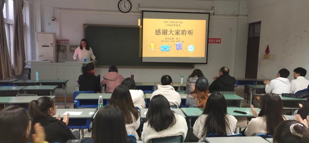 为深入贯彻学习中国特色社会主义法律思想及专业知识,2020年12月2日下午三点,我院组织法律专业全体学生开展了涉法问题社会调研的实践报告展示活动。此次参会人员主要包括19级法律事务全体师生。活动分为三个部分,各组成员展示报告成果、指导老师点评和最后的总结。