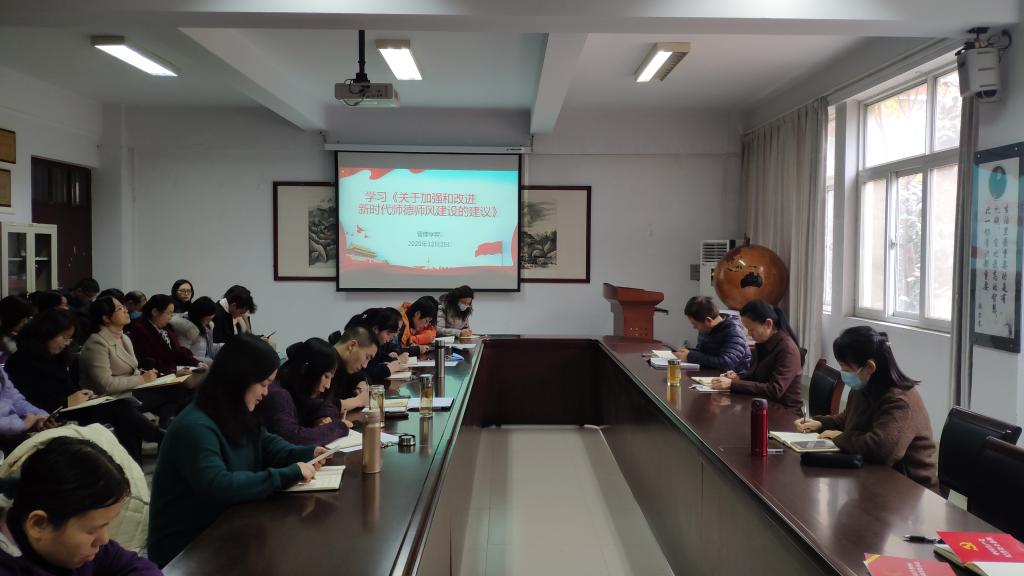 接下来会议组织全体教师深入学习教育部等七部门印发的《关于加强和改进新时代师德师风建设的意见》和中共中央、国务院印发的《深化新时代教育评价改革总体方案》,会议指出要全面提升教师思想政治素质和职业道德水平,坚持思想铸魂、价值导向和党建引领,将师德师风建设要求贯穿教师管理全过程,会议重点解读改革教师评价,推进践行教书育人使命的具体举措,强调坚持把师德师风作为第一标准,突出教育教学实绩,强化一线学生工作,改进高校教师科研评价。