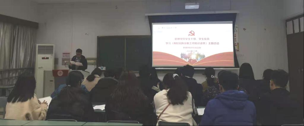 为深入贯彻落实全国宗教工作精神,11月18日下午,beat365官网学生党支部在3202教室召开学生党支部会议,学生党员干部集中学习了《高校民族宗教工作知识读本》。