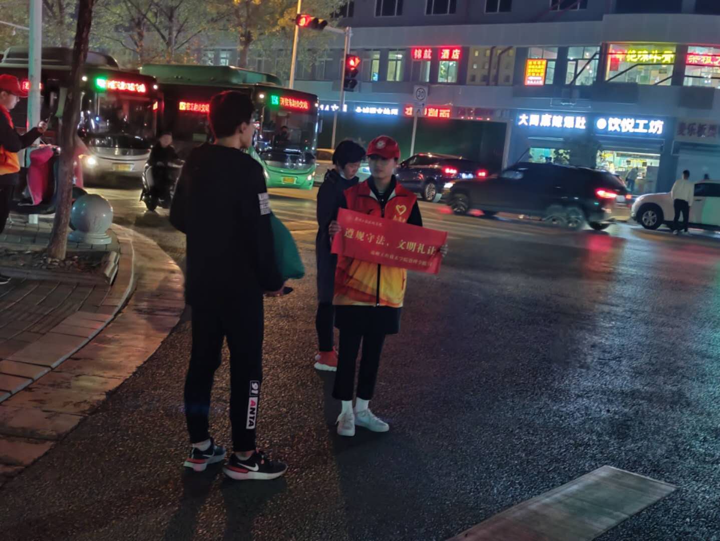 为了进一步提高大学生文明交通意识,丰富大学生活,营造文明有序的交通氛围,助力创建全国文明城市,beat365官网分团委于10月29日-31日在英才街桂圆南街交叉口开展了为期3天的"引导文明交通 倡导文明出行"的志愿服务活动。