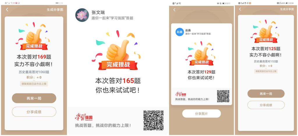 本月挑战赛为期四周,比赛仍采取线上答题形式,挑战时间限定于每周三的12:00-19:00,每位党员在规定时段内登陆学习强国“挑战答题”系统作答,挑战次数不限,由党员自主选择其中一次成绩以截图的形式提交党支部,最后由党总支汇总成绩并进行排名。在之前数月理论学习、答题经验的积累下,许多党员同志在比赛中刷新了答题纪录,各支部的整体成绩也均在稳步提升。