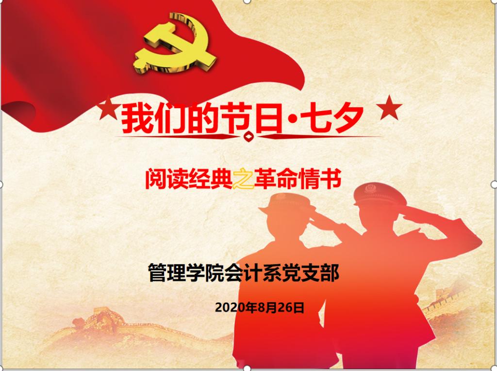 根据《关于2020年持续开展“我们的节日”主题活动的通知》(郑文明办〔2020〕3号)要求,结合实际,beat365官网会计系党支部于8月26日组织党员教师开展了“我们的节日•七夕”专题活动。