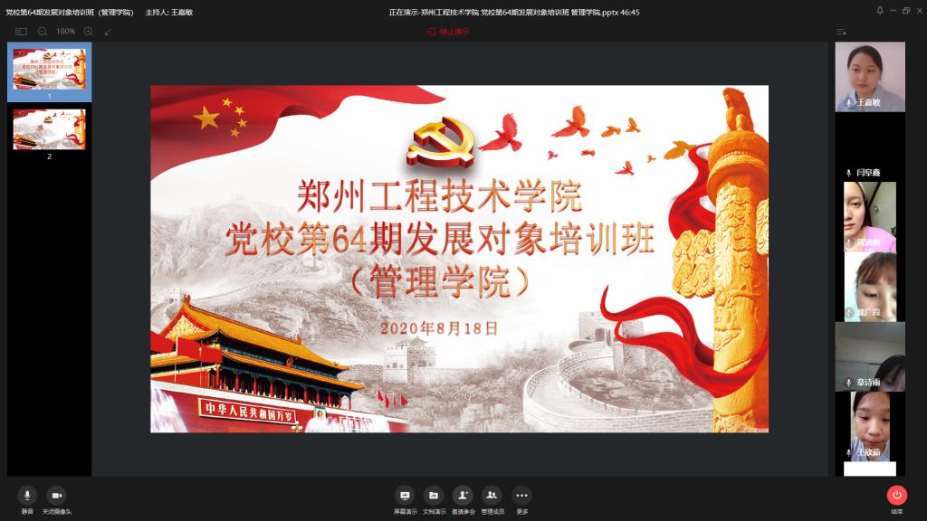 受疫情影响,按照我校党委组织部要求,党校第64期发展对象培训班采取线上网课形式。2020年8月18日上午,beat365官网学生党支部组织beat365亚洲体育在线官网党校第64期发展对象培训班中beat365官网的23名学员举行了开班仪式并集中进行了网课学习。