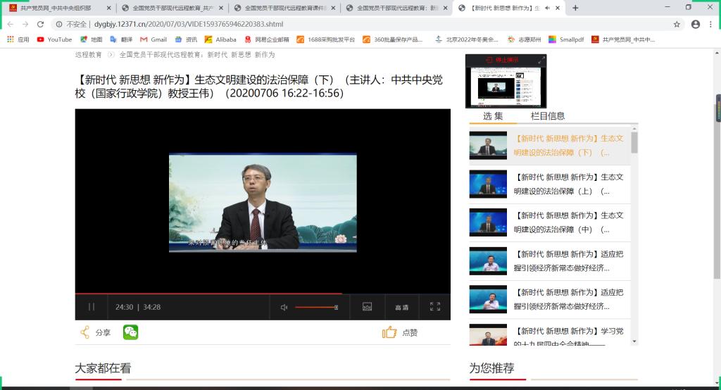 在第一次网课学习过程中,学员集中观看了《生态文明建设的法治保障》等党课视频,视频中主要围绕“尊重自然,顺应自然,保护自然”的生态文明理念开展,学员们全神贯注地听课,纷纷表示今后在生活中会自觉参与生态文明建设,从小事做起、从身边的点滴做起。