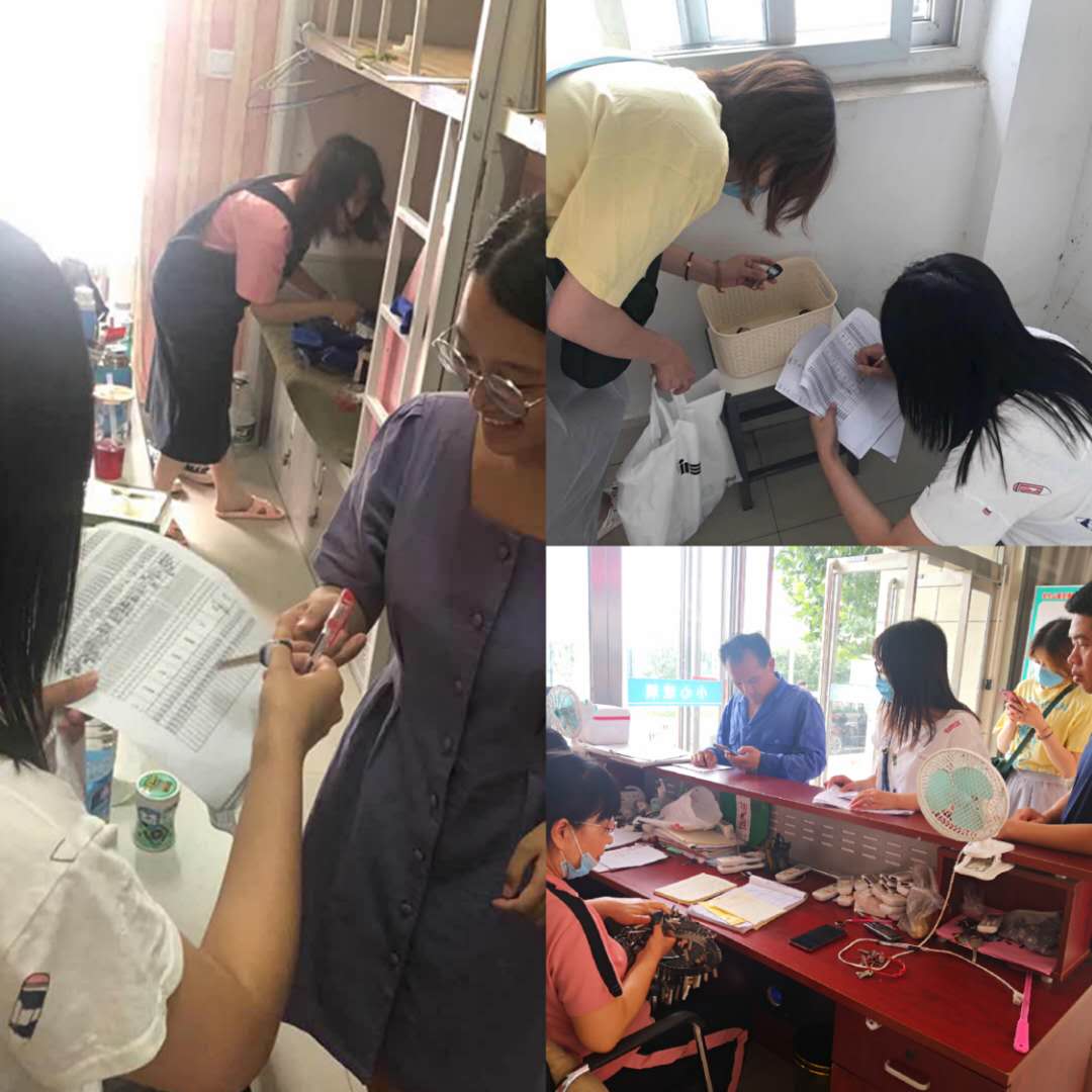 7月3日,按照郑州市招考中心要求,beat365官网学工办教师积极配合学生处进行“无声入场”模拟演练,教师们手持金属探测器逐一对每位考生进行全面细致的检查,确保考生明确考场禁带物品。7月9日,beat365官网分团委学工办7名送考教师及2名爱心送考党员教师于6点钟陆续到达金河校区为同学们送考,接送beat365官网280名在金河校区隔离的考生往返于beat365亚洲体育在线官网英才校区、郑州市一中、郑州市八十二中等考点。保障所有考生安全、顺利参加专升本考试,为考生加油鼓劲,疏解紧张情绪。7月10日中午,学工办老师及部分学生党员依旧忙碌在金河校区学生宿舍,帮助毕业生们整理行李,收集宿舍钥匙,办理退宿手续。除此之外,2020届专升本考生在校隔离期间,beat365官网领导带领学工办教师坚持每天按时在金河校区学生宿舍检测学生体温并及时将检测结果上报。