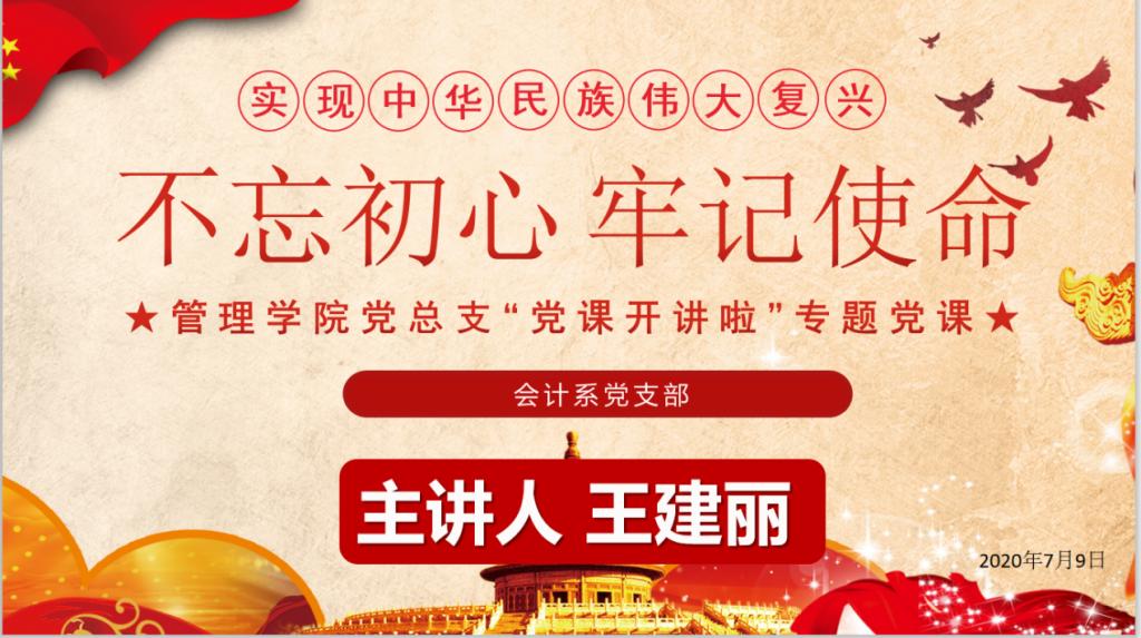 支部党员教师上党课既是beat365官网入党积极分子教育的常规工作,又是我校“党课开讲啦”活动的具体实践。7月9日,由会计系党支部宣传委员王建丽副教授为学生入党积极分子讲授了本期第一次党课,题为“不忘初心、牢记使命”,支部全体教师党员也全程参加了党课学习。