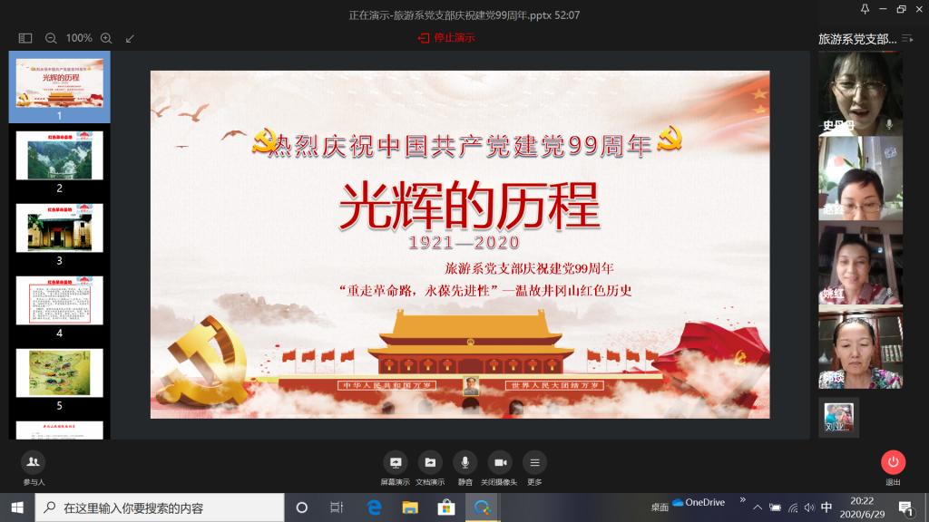 旅游系党支部开展“重走革命路,永葆先进性”主题活动。支部党员结合专业所长围绕革命圣地——井冈山设计多条红色旅游线路,在线游览井冈山全貌,通过观看纪录片《会师井冈山》,聆听全国红色故事讲解员大赛选手带来的精彩讲解,全体党员回顾了中国共产党领导的工农武装力量在井冈山聚拢星火,发展壮大的光辉历程,深刻体会坚定信念、艰苦奋斗、实事求是、敢闯新路、依靠群众、勇于胜利的“井冈山精神”。beat365官网党总支副书记、院长郭琰强调新时代的教师要继承和发扬“井冈山精神”,精心谋事,敢闯敢干,为专业建设和人才培养多做贡献。