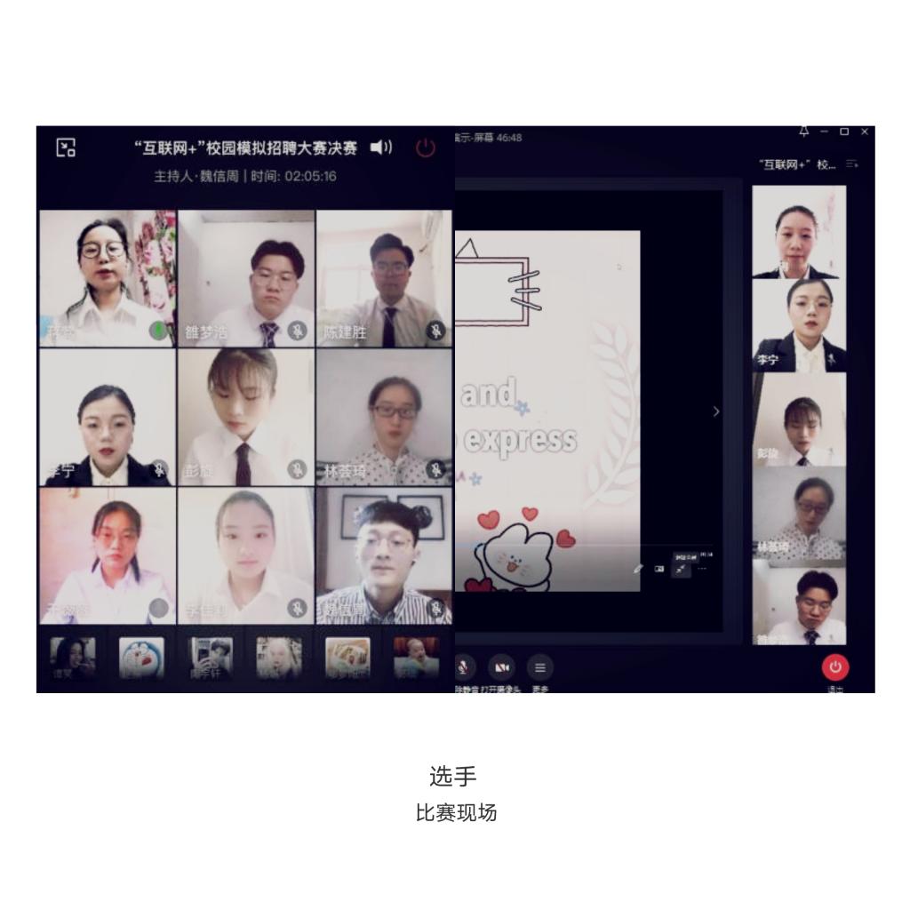 本次模拟招聘大赛着重突出“互联网+”的概念,疫情防控期间,模拟招聘大赛的初赛复赛均为线上比赛,而决赛采取线上线下相结合的方式。选手线下准备比赛文案和素材,再进行线上PK;评委老师集中于学校、设置线下评委席,与参赛选手们隔空互动。这种半虚拟半真实的方式对师生来说既是一种新鲜的尝试也是一场前所未有的考验。每一场比赛之前,指导老师和参赛选手都会提前做好各种赛前测试和准备工作,以确保线上比赛的顺利进行。这次比赛,进一步贯彻落实了我校综合能力显著增强的人才培养要求,使理论知识教学与实践更好地相结合,为同学们今后走向职场提前做好准备工作。比赛虽已结束,我们的脚步却不会停下,期待未来的人生道路上同学们能够创造更多的可能性,成为更好的自己。(文:董甲婷/图:李宁)