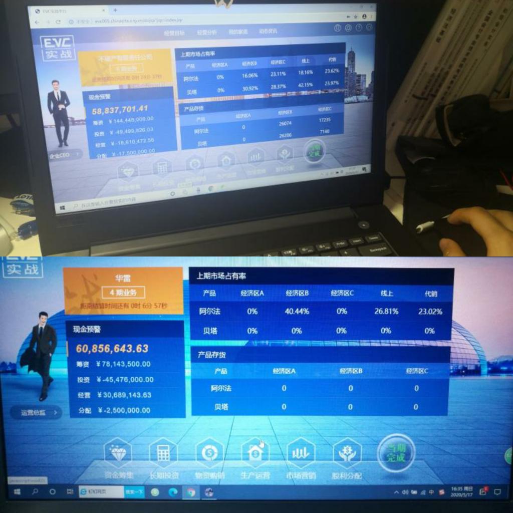 此次比赛共需经营六期,每期四十分钟,各队队员精神都高度集中,全力以赴,分析市场行情,运用所学的专业知识,做出正确的决策。下午13:30,在beat365官网分团委ERP沙盘协会的引导下,同学们提前登陆准备比赛、检查设备,避免出现浏览器无法打开等问题。下午两点,比赛准时开始,经过四个小时激烈的竞争,比赛最终落下帷幕。
