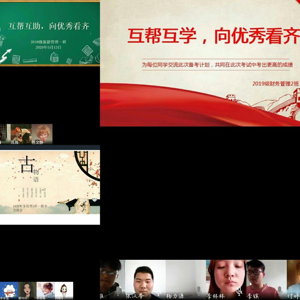 会议以各团支部团支书为主导,通过企业微信、钉钉等线上形式举行。为确保线上学习交流会的顺利举行,各团支部班团支书充分准备相关材料,积极动员本班学生分享优秀的学习方法。作为课堂教学师生间情感沟通的桥梁和纽带,各团支部学习委员对学生线上线下学习所遇到的问题进行了详细地了解,提出了很多好的意见和建议。各团支部学生代表积极发言:在2018级财务管理1班各团支部的分享会上,刘晓才同学分享了自己的期中备考总结:我们需要对当前网络课程学习查漏补缺,做到及时发现问题、解决问题,有计划的进行复习准备,攻克难关,用最积极的心态去迎接一切挑战;在2018级旅游管理1班各团支部的分享会上,赵雨曼同学对于创造良好的线上学习环境方面提出意见:我们千万不能边看电视边听课,边玩游戏边听课,而是每天老师直播讲课要早点进入课堂,随时记笔记,不旷课,布置的作业一定要按时完成;在2019级财务管理2班团支部的分享会上,裴聪聪同学认为学习要制定合理计划和正确的目标,养成良好的学习习惯……