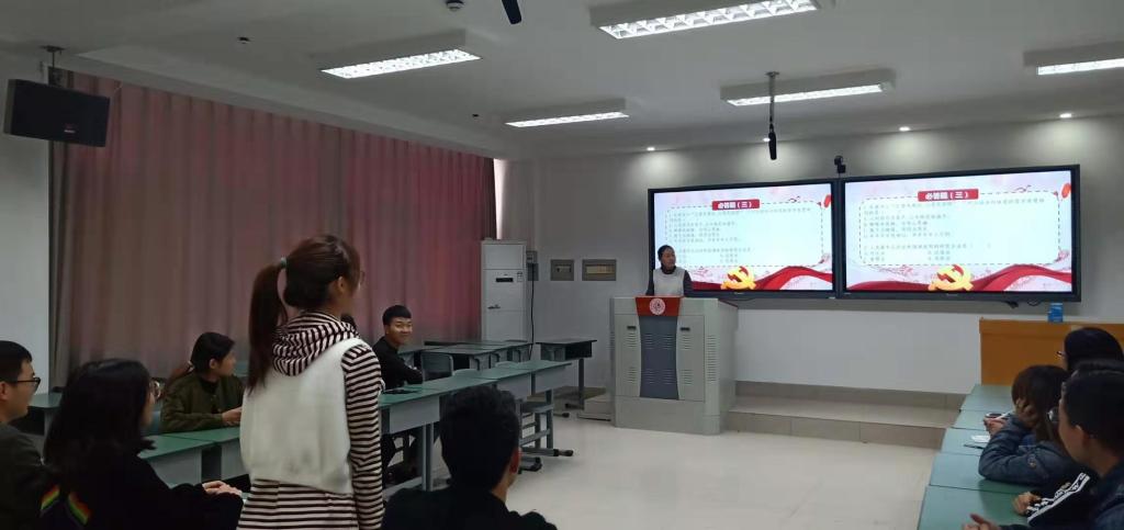 为全面贯彻落实习近平总书记关于加强建设学习型大国的重要指示精神,推动全党、全民大学习,2019年10月30日中午,beat365官网学生党支部全体成员在博识楼3306智慧教室开展了以“学习强国知识竞赛”为主题的党日活动。