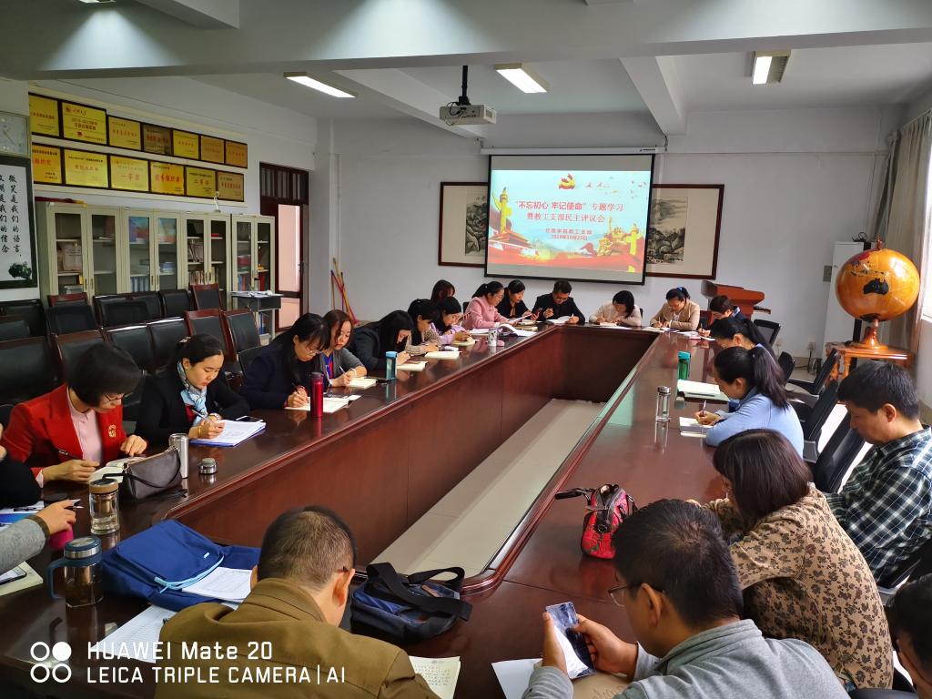 10月23日下午,beat365官网教工支部在博识楼3108会议室举行了“‘不忘初心,牢记使命’专题学习暨教工支部民主评议会”。