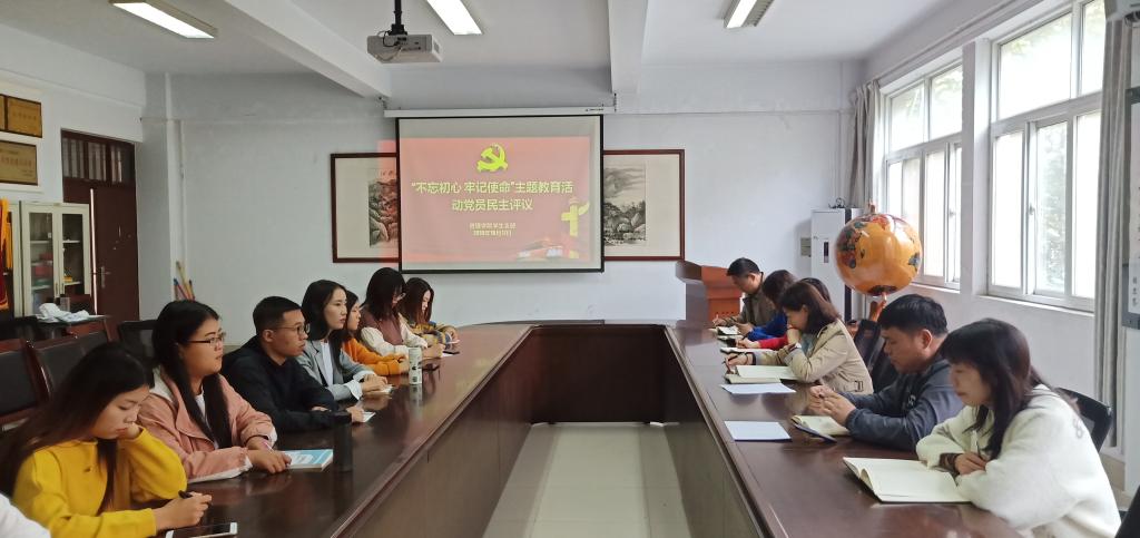 为深入贯彻习近平总书记系列重要讲话精神,进一步加强党员的政治思想教育,加强党内组织生活,发挥党支部战斗堡垒作用,始终保持党员的先进性和纯洁性,2019年10月17日中午,beat365官网学生党支部组织全体党员在博识楼3108会议室召开了“不忘初心·牢记使命”主题教育党员民主评议会议。会议由beat365官网学生党支部书记张彩虹主持。
