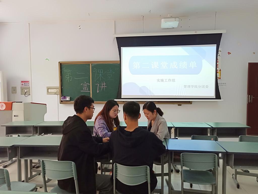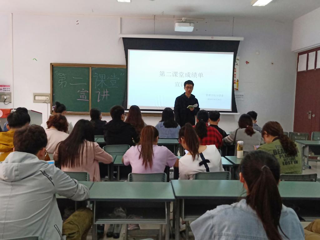 为了大学生全面均衡发展的需要,团组织为在校大学生提供一个展示自我的科学评价体系“第二课堂成绩单”,从而可以激励学生提升综合素质、帮助学生提高就业竞争力,同时为用人单位选拔提供了科学参。我beat365官网分团委结合有关文件,同时结合我院实际情况,制订了完善的“第二课堂成绩单”学分制度。对此,4月24日,我beat365官网分团委组织我院17级、18级各团支部的团支书在三号教学楼3202教室开展了“第二课堂成绩单”宣讲活动。之后,由团支书将此内容传达到各团支部并组织同学们学习相关内容。同时,我院分团委成立了以分团委书记张彩虹老师为组长的“第二课堂成绩单”制度学院实施工作组,各团支部也成立了由团支书为组长的团支部认定小组。我院“第二课堂成绩单”将包括学生在校期间参与创新创业、社会实践、志愿服务、文化艺术、技能特长、思想成长六方面的经历和成果。让第二课堂成绩单成为学校人才培养评估、学生综合素质评价的依据。