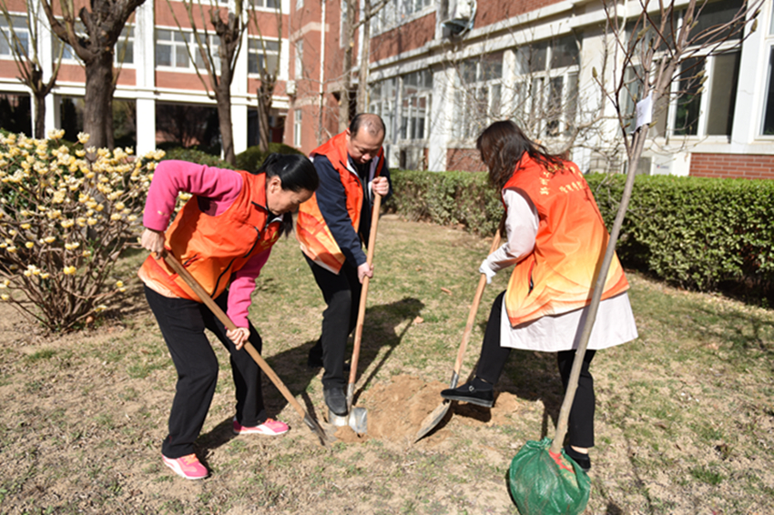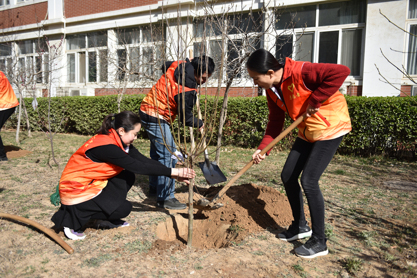 春回大地,万物复苏。为激发师生爱护校园,美化校园的情感,营造优美的工作学习环境,3月12日上午,在院领导的带领下beat365官网党员教师组成志愿者服务团在博识楼前开展了义务植树活动,我院民主党派党员教师也响应号召,积极参与其中。