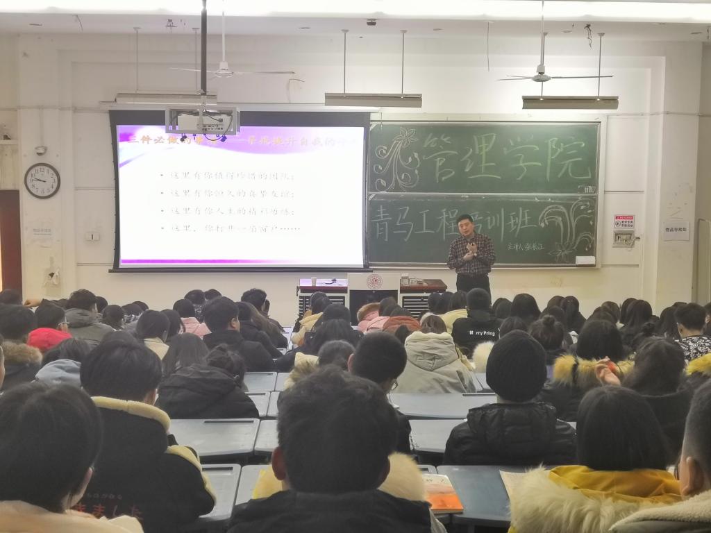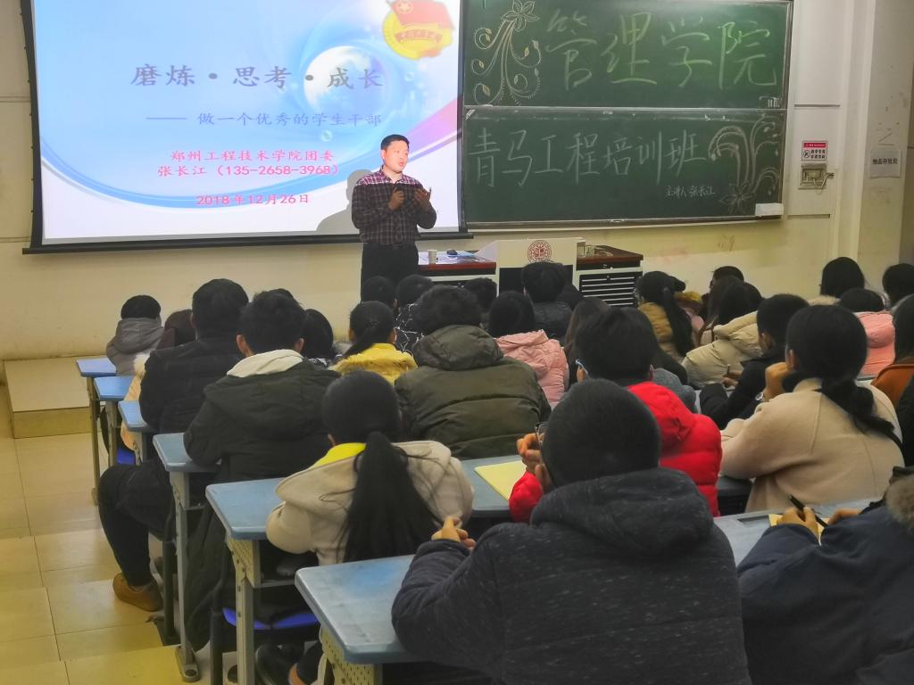 此次课程由校团委张长江老师担任主讲人,以“磨练、思考、成长——做一个优秀的学生干部”为主题,旨在增强学生干部的责任感和使命感,进一步培养学生干部的政治素质,道德素质和心理素质。张长江老师将理论知识和实践经验相结合,以自身经历为例讲述了如何成为一名优秀的青年学生干部。他生动形象的举例,深入浅出的讲解让参加培训的每一位同学受益匪浅。