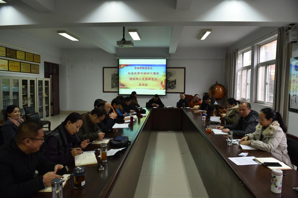 其次,举行了“纪念改革开放四十周年,畅谈郑工发展新变化”座谈会。大家共同观看了由中共中央宣传部、中央广播电视总台联合制作的大型电视纪录片《我们一起走过——致敬改革开放40周年》。大家就改革开放四十周年我国的经济、思想、生活的迅速发展进行了发言,畅谈了学校的新变化。