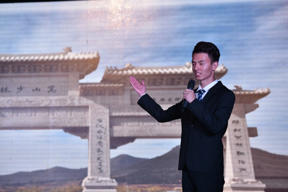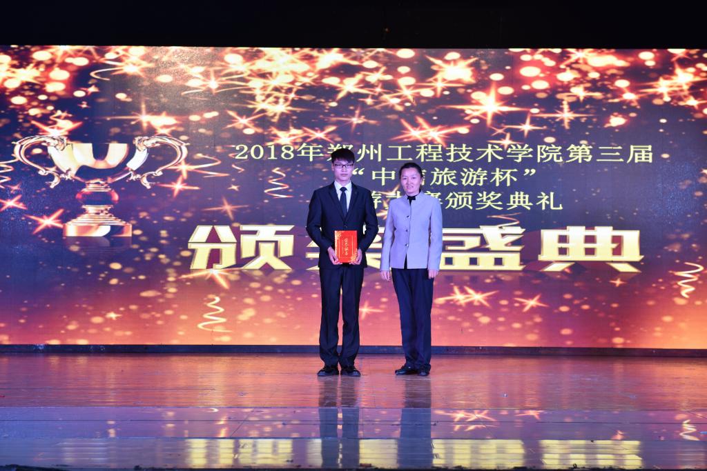 | 河南中信旅行社国际有限公司副总经理崔湛为一等奖选手颁奖 |