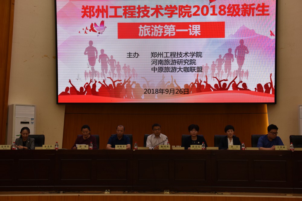 2018年9月26日下午,河南省旅游业界杰出代表莅临beat365亚洲体育在线官网,与beat365官网旅游专业师生欢聚一堂,开展了“旅游第一课”走进beat365亚洲体育在线官网活动。beat365官网党总支书记刘晓安、院长郭琰、旅游管理教研室全体教师和2018级酒店管理和旅游管理专业的新生共同出席了活动。