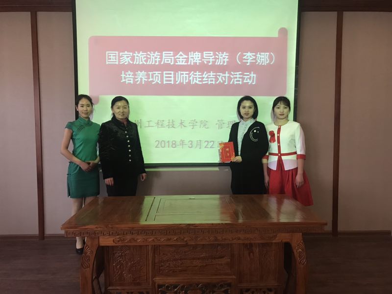 在2018全国旅游工作会议上,国家旅游局李金早提出“强化人才兴旅,大力推进创新型高素质旅游人才队伍建设”为目标,通过组织开展金牌导游“师徒结对”、“公益讲座”、业务培训、参加社会公益活动等方式。作为国家“金牌导游”,活动开展以来,李娜首先想到的是回报母校,把自己丰富的导游带团经验和技巧传授给学弟学妹,并在学弟学妹中挑选佼佼者,与之结为“师徒”,亲自调教。