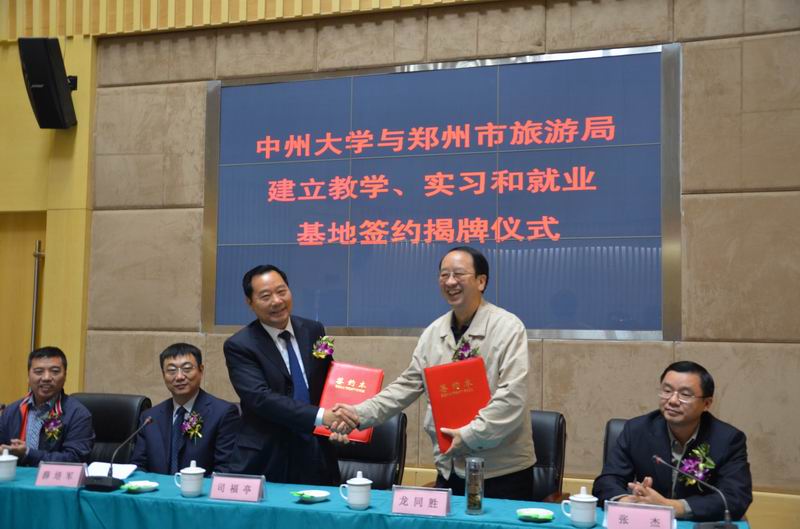 2012年10月19日上午,中州大学与郑州市旅游局建立校外教学、实习和就业基地的签约仪式在郑州市旅游信息咨询服务中心举行。